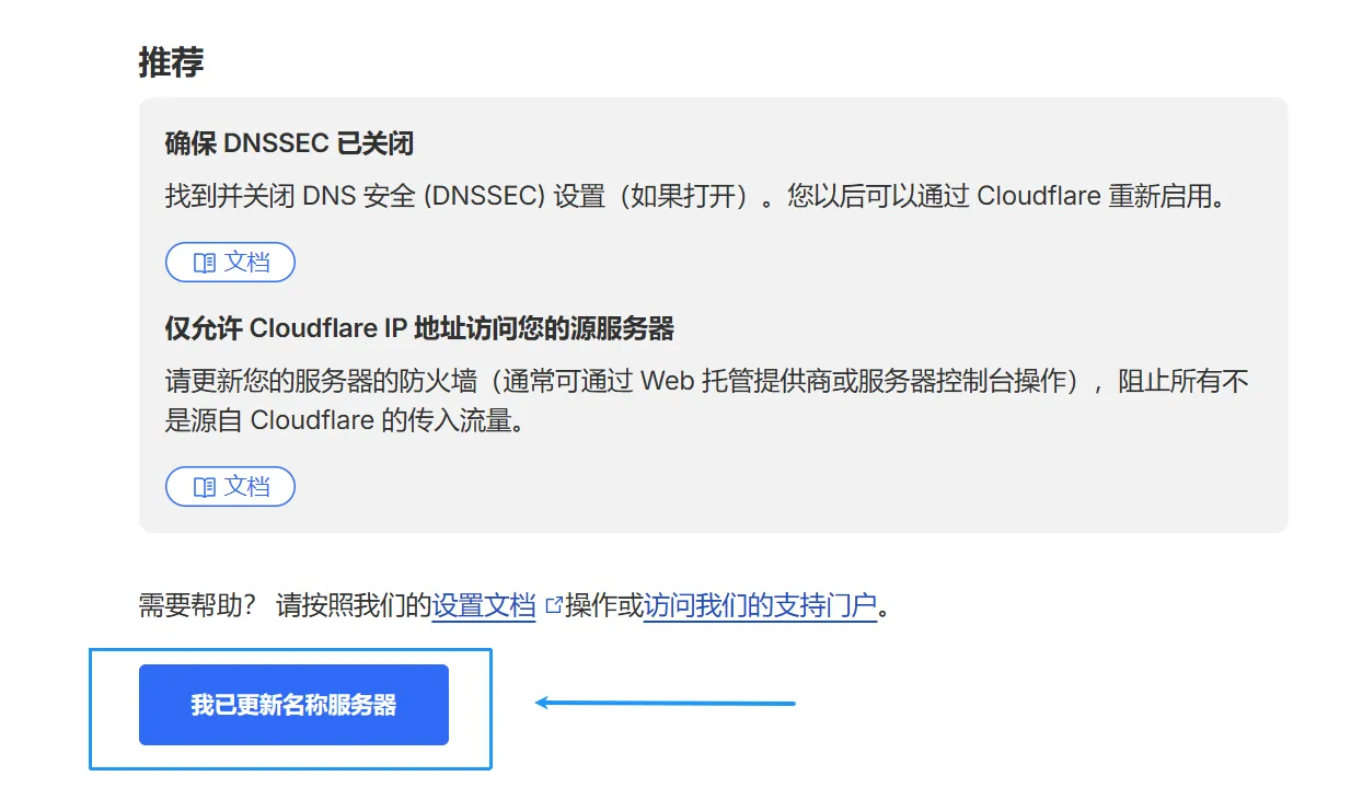 返回cloudflare,点击我已更改