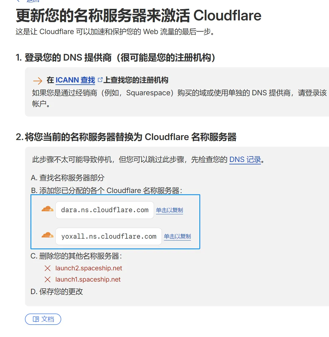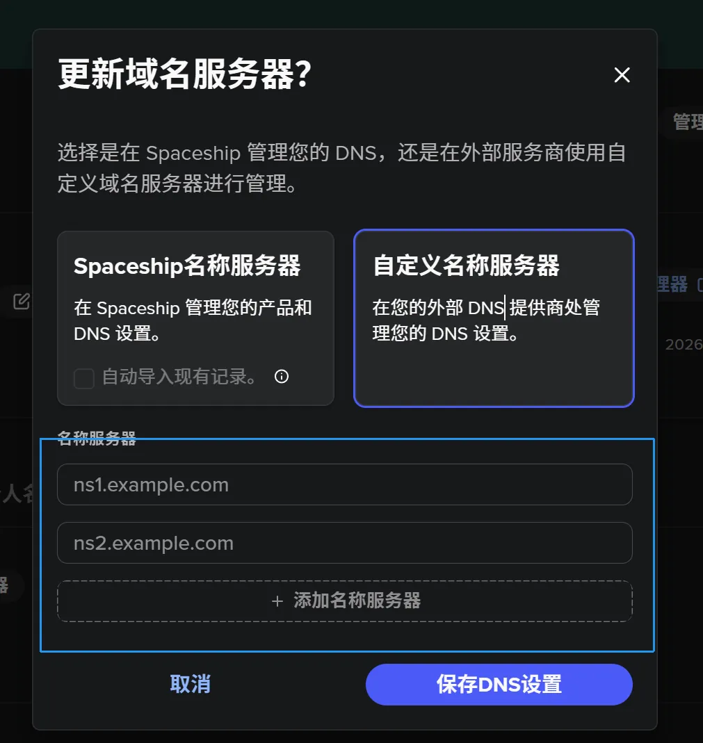 本文将以 spaceship 平台为例,简要介绍如何将域名托管到 Cloudflare。
